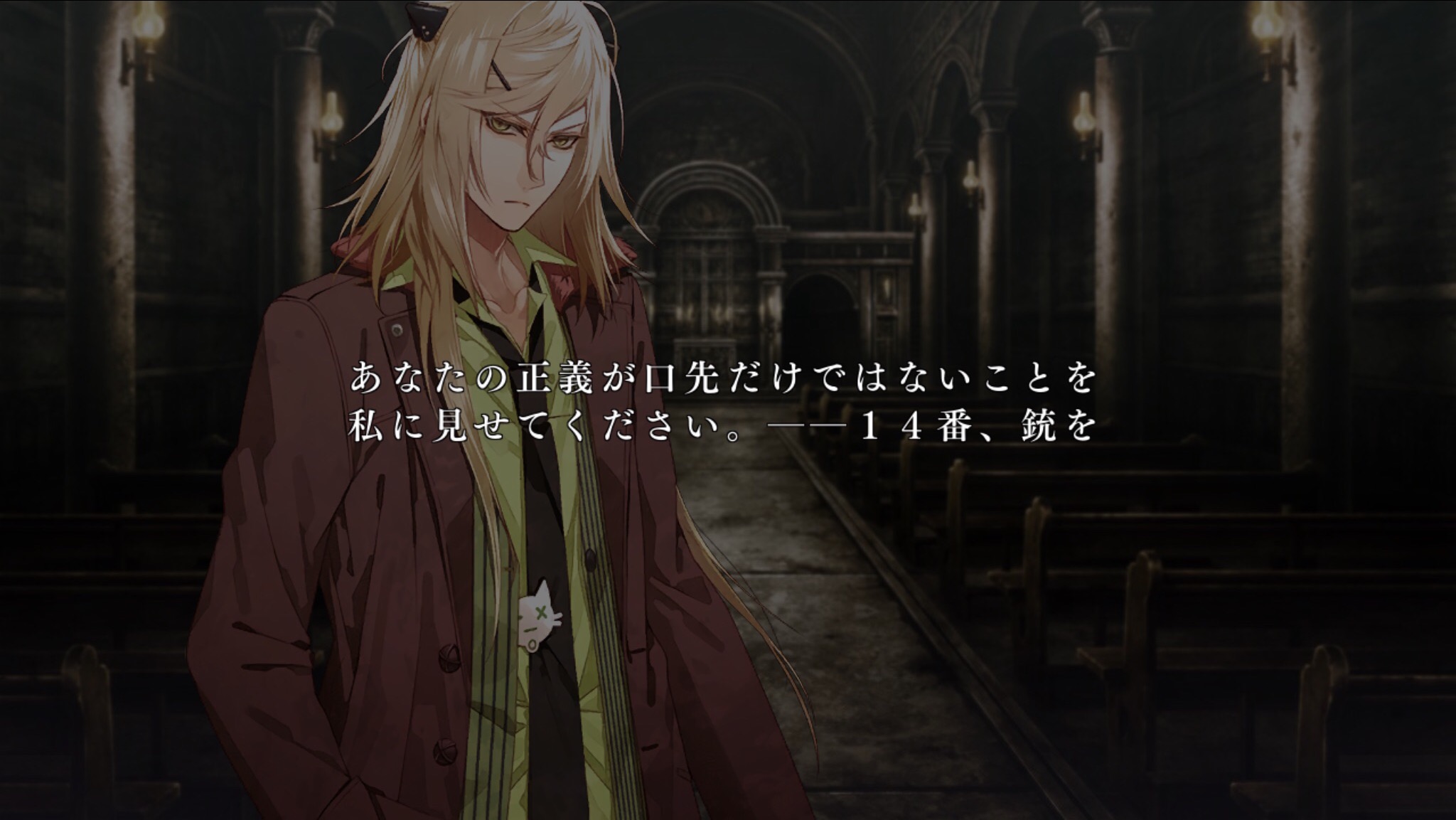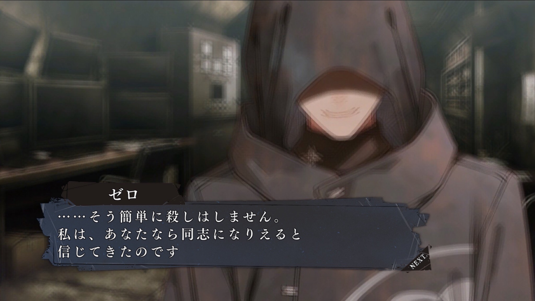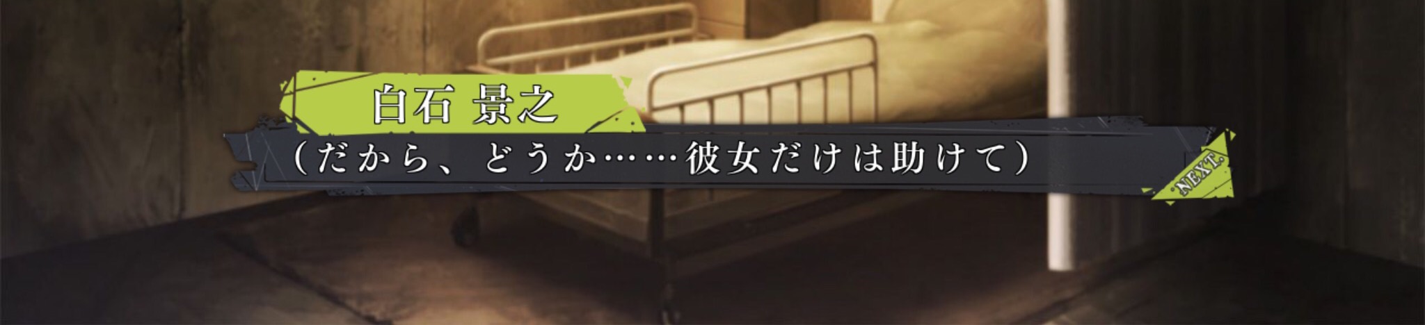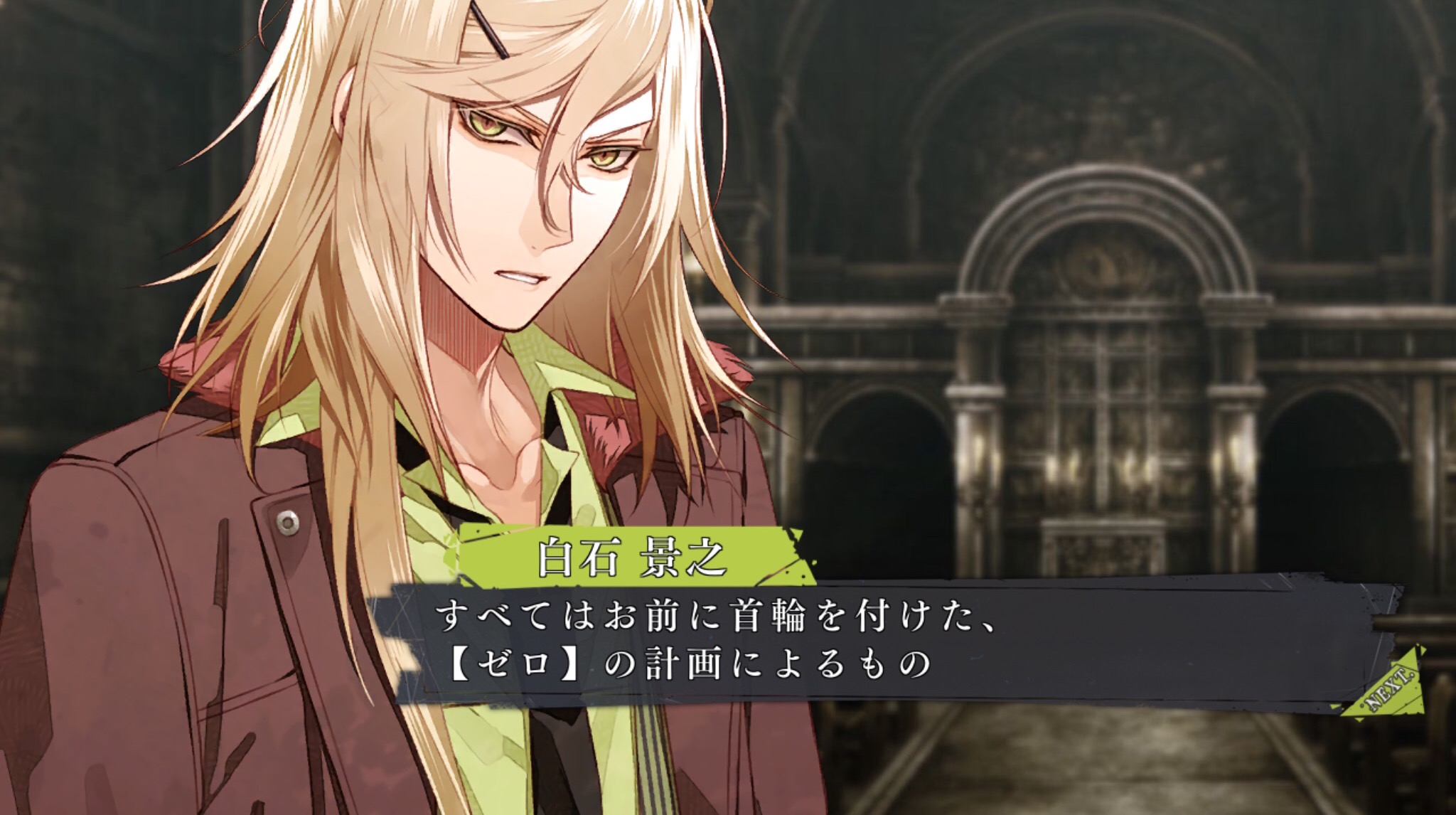 주인공의 필사적인 설득으로 카게유키는 처음으로 제로의 명을 거역하고 둘은 그 자리에서 도망침. 하지만 쫓아온 제로가 내는 특수한 주파수(?) 때문에 카게유키는 매우 고통스러워함ㅠㅠㅠ 주인공이 총으로 제로의 심장을 맞춰서 죽이지만 그것과 동시에 제로가 목걸이를 발동시키고 주인공은 독 때문에 의식을 잃음ㅜㅜㅜㅜ