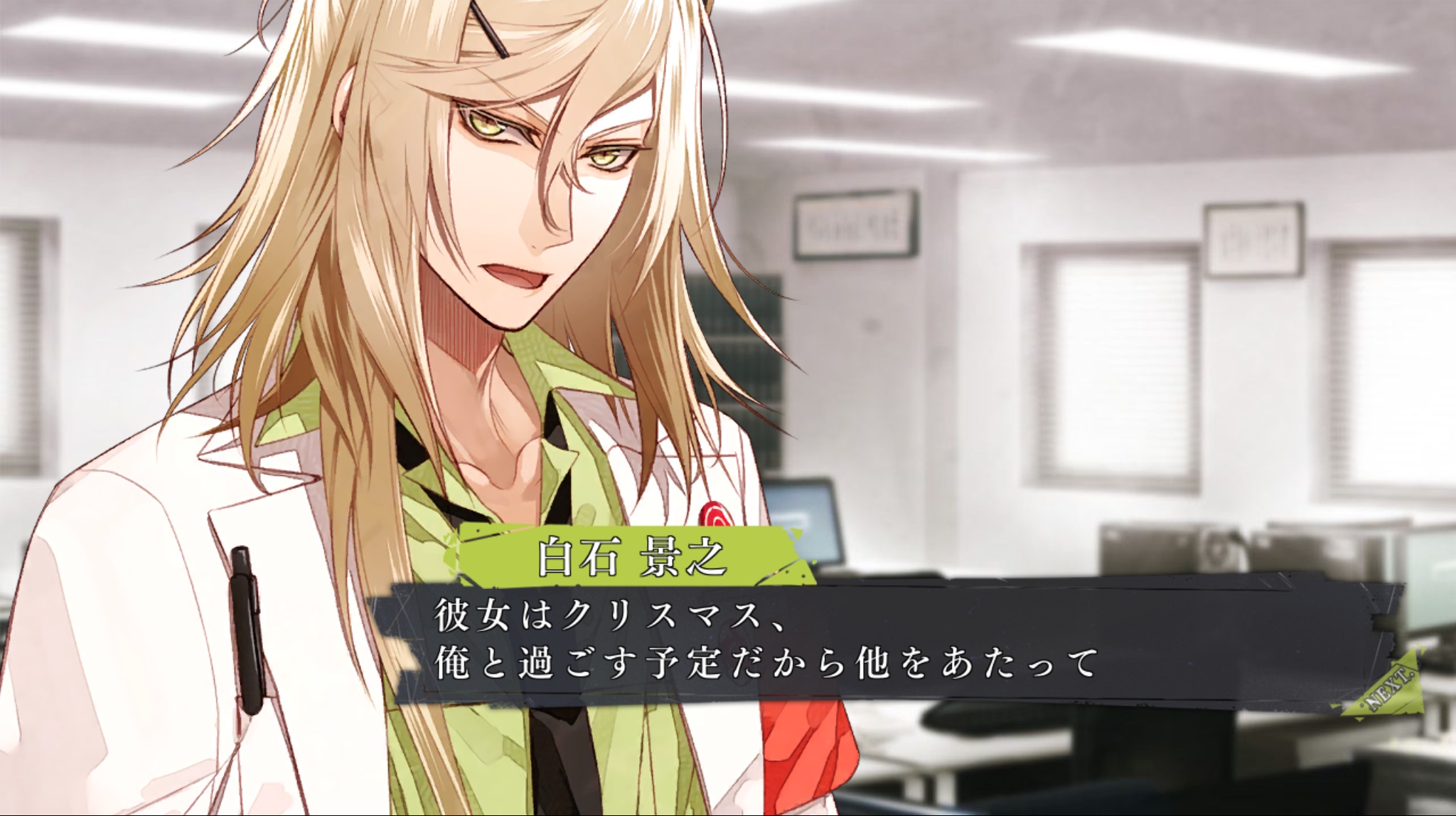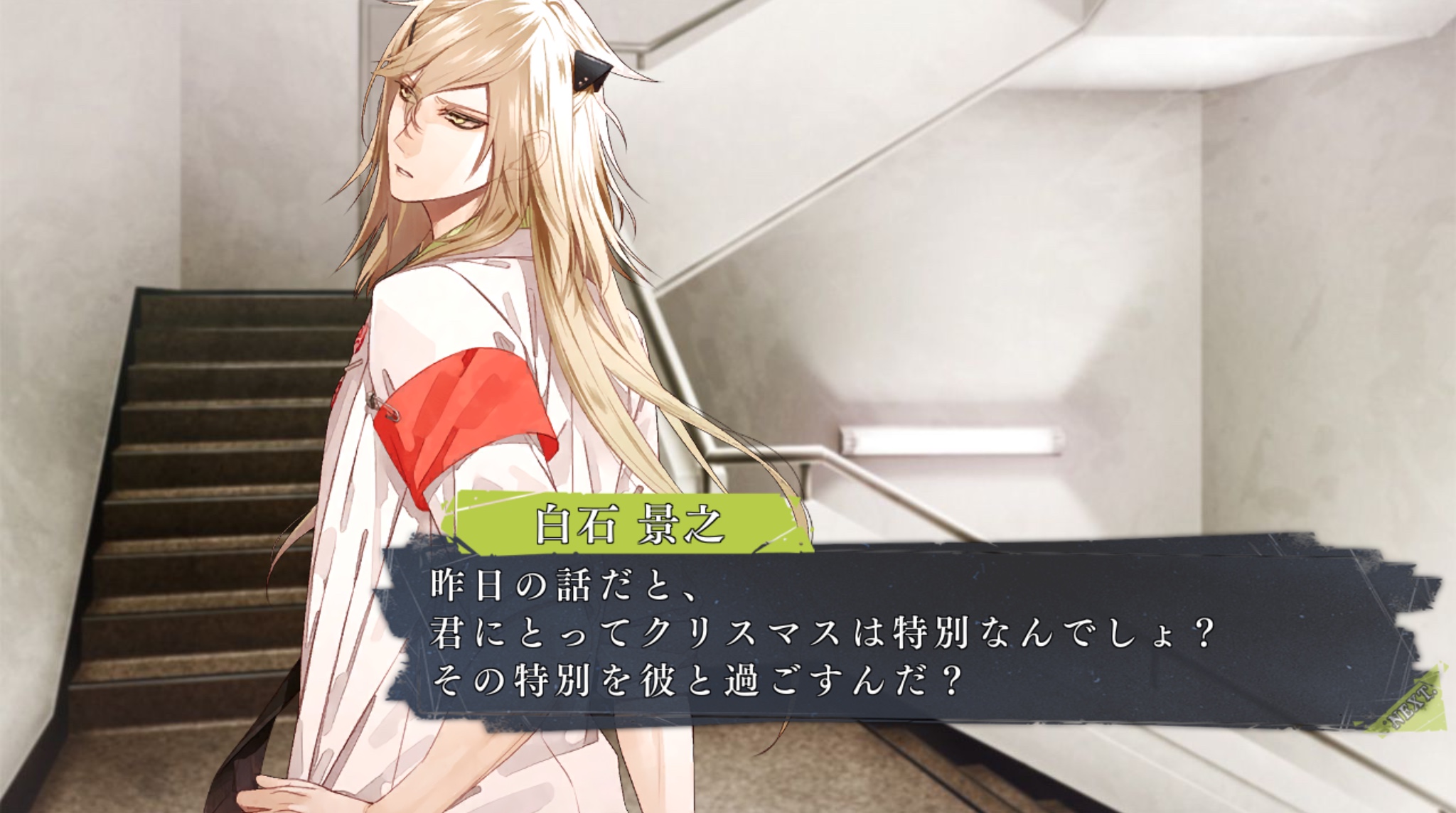 그때 카게유키가 나타나서 주인공이 자기랑 같이 크리스마스를 보낼 예정이라고 말하는데, 본인도 자기가 왜 그렇게 말했는지 이해할 수 없어서 당황함.