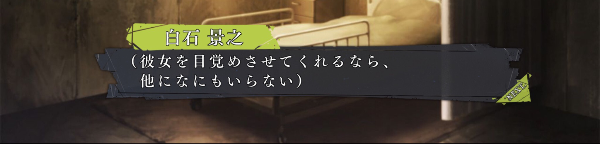 카게유키가 레이를 죽이고 잠적하기 전에 남겼던 말을 똑같이 들은 주인공이 그제서야 모든 걸 기억해 낸다. 대사에 있는 '시라이시상' 보고 나도 안심함......